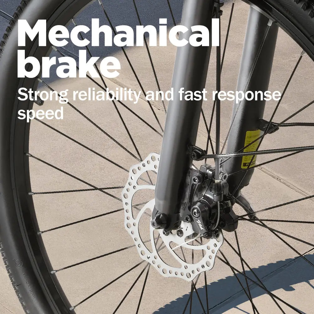 Engineered with a premium mechanical brake system, it ensures robust reliability and swift response times, instilling confidence in every stop. Whether navigating bustling streets or serene bike paths, experience seamless control and peace of mind. Embrace the future of urban commuting with a bike that blends efficiency, durability, and your safety at its core.