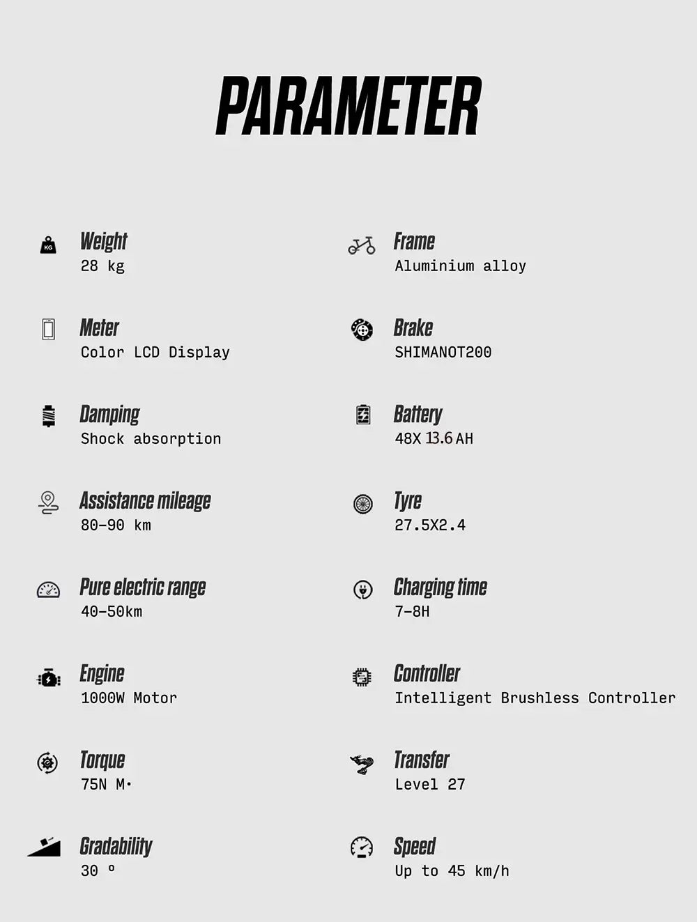 RANDRIDE YS90B E-Mountainbike 48V 13.6Ah 1000W hydraulic brakes 27.5"Aldult E-Bike